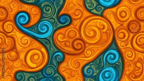 swirl, spiral, orange, background, stylised, pattern, abstract, colours, flowing, vibrant, decorative, intricate, digital, texture, design, curve, artistic, shape, whimsical, design element, artwork, painting, motion, art, line, graphic, composition, contemporary, seamless, dynamic, teal, modern, energy, fantasy, complex, illustration, organic, style, aesthetic, visual, repeat