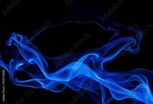 Abstract swirling smoke waves in blue and black on a dark background, illustration, swirl