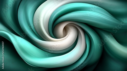 teal, white, abstract, swirl, spiral, wave, curve, flowing, smooth, texture, design, art, background, pattern, graphic, illustration, modern, elegant, sophisticated, dynamic, motion, energy, vibrant, calming, serene, peaceful, tranquil, luxurious, silky, fabric, material, glossy, sheen, light, shadow, depth, contrast, visual, aesthetic, beauty, style, creativity, imagination