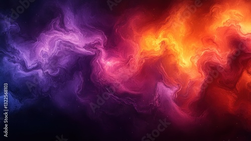 Abstract swirling vibrant purple, orange, and red nebula cloudscape.
