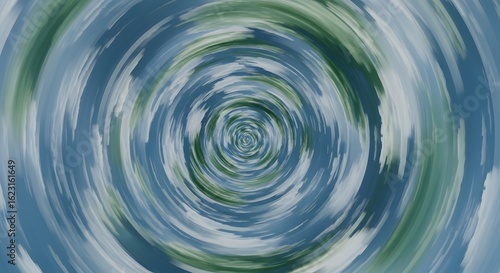 Abstract swirling vortex of blue, green, and white paint strokes creating a mesmerizing tunnel effect, a dynamic background for creative concepts