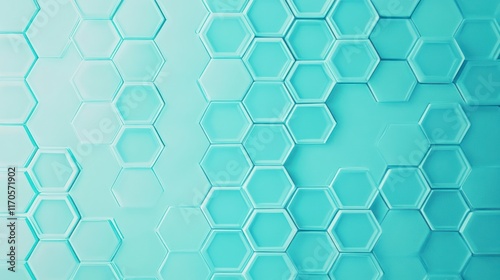 Abstract teal hexagon pattern, digital background, 3D render, technology texture
