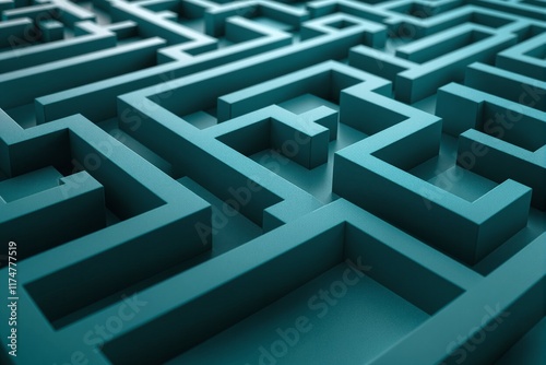 labyrinth, teal, abstract, pattern, geometric, complexity, challenge, problem, smooth, angle, texture, path, navigation, journey, design, art, concept, modern, sharp, background, conceptual, view, sample, ornament, shape, form, even, level, way, road, map, trip, tour, project, creativity, artwork, creative, idea, contemporary, new, environment, technology, artificial, picture, ai, generative, illustration