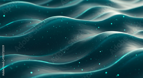 abstract, background, teal, wave, wave, ocean, water, fluid, motion, flowing, particle, glowing, sparkle, shimmer, texture, surface, digital, art, design, graphic, pattern, smooth, curve, elegant, luxury, serenity, calming, energy, vibrant