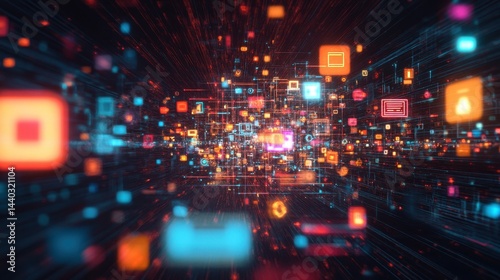 technology, abstract, datum, network, digital, communication, flow, icon, connection, cyberspace, futuristic, background, cyberspace, information, system, matrix, virtual, web, cloud, computing, innovation, modern, design, graphic, structure, tech, binary, code, science, artificial, intelligence, ai, global, business, security, online, concept, speed, transfer, neon, glow, light, blue, orange, red, pattern, texture, wallpaper