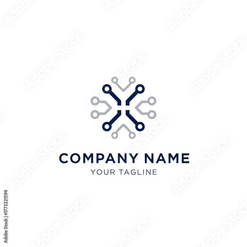 Abstract Technology Circuit Board Logo Design with Interconnected Nodes.