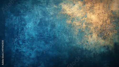Abstract textured grunge blue gold background artistic vibrant distressed rough rustic design overlay copy space banner weathered aged vintage neutral gradient artistic concept creative backdrop