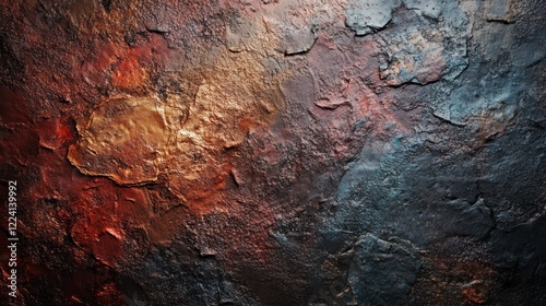 Abstract textured surface with rich colors resembling weathered rock or mineral formations.