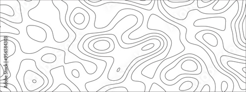 Abstract Topographic Contour Line Art Pattern Background – Seamless Black and White Design for Mapping, Geology, and Geographic Illustrations. Topography map wave line
