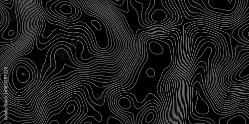Abstract topography pattern lines sea map on a black background with white contour lines area space geometric strip grid line topo map technology modern design