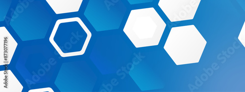 Abstract trendy technology of gradient white and blue hexagonal element pattern artwork design background. Use for ad, poster, presentation, print, artwork.