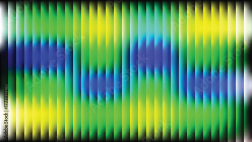 Abstract vector background with glowing vertical stripes featuring a vibrant blue, green, and yellow gradient wave pattern