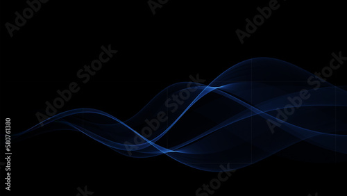 Abstract vector blue wave design element on dark background. Science or technology. Design element