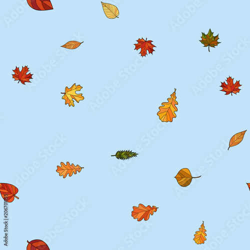 vector, seamless, brown, yellow, orange, green, red, purple, violet, doodle, hand-drawn, autumn, leaf, floral, forest, nature, pattern, season, illustration, plant, design, decoration, tree, graphic, retro, shape, silhouette, garden, paper, art, stylize, botany, october, bush, multi, falling, colours, fashion, september, abstract, oak, vignetting, maple, image, textile, cartoon, summer, background