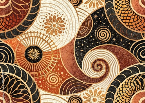 Abstract Vintage Background - Geometric Circles & Spirals - Burnt Orange & Gold Gradient