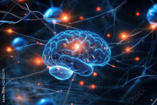 abstract visualization of neural networks with glowing connections, floating ai symbols, and digital brain patterns in deep space