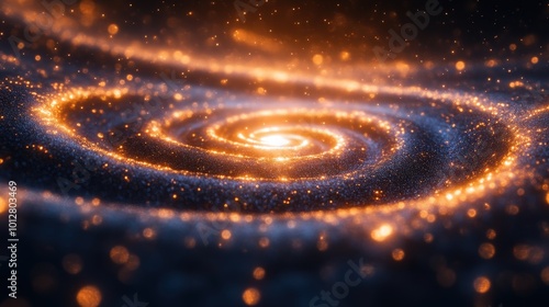 Abstract Vortex Of Shimmering Golden Particles Spiraling Towards A Bright Center For Cosmic And Futuristic Concepts