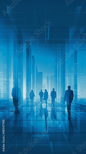 Abstract Wallpaper for Human Resources Recruitment Poster: Gradient Blue Illustration for HR Planning Template with Copy Space. Ideal for Promoting Corporate Culture and Sustainable Development. Perfe