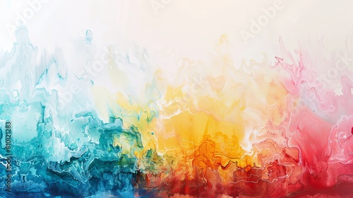 Abstract watercolor and acrylic smear blot creating an interior painting with a textured color stain horizontal background.