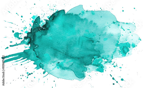 Abstract watercolor brush splash, green cyan color, grunge texture, pastel watercolor painting element