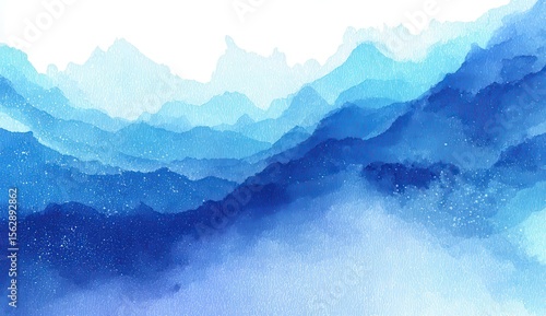 mountain, blue, watercolor, abstract, landscape, serene, atmospheric, misty, layer, shades, gradient, texture, paint, art, hill, peak, range, sky, white, background, calm, tranquil, peaceful, dreamy, aethereal, soft, gentle, flowing, hazy, depth, perspective, distance, huge, expansive, coolness, serenity, beauty, nature, artistic, impressionistic, colours, hue, tone, speckled, light, shadow, vibrant, subtile