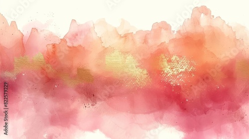 Abstract watercolor painting. Pink and peach colors with gold flecks.