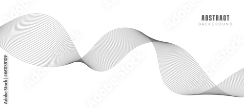 Abstract wave element for design. Digital frequency track equalizer. Stylized line art background. Vector illustration. Wave with lines created using blend tool. Curved wavy line, smooth stripe.