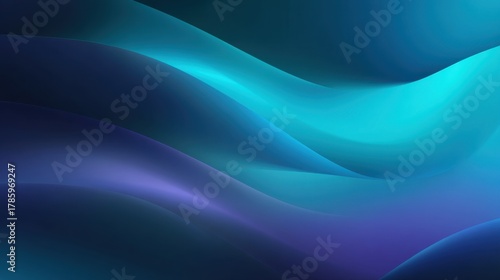 Abstract Waves in Shades of Blue and Aqua with Smooth Gradients Reflecting Light and Creating a Sense of Motion and Tranquility in a Digital Background