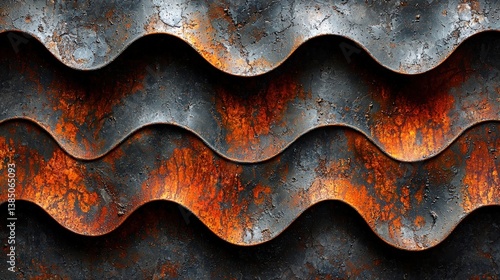 Abstract Waves of Rusty Metal with Textured Surfaces and Industrial Aesthetic