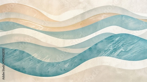 Abstract wavy lines on a sandy beige-turquoise gradient for a peaceful summer vibe
