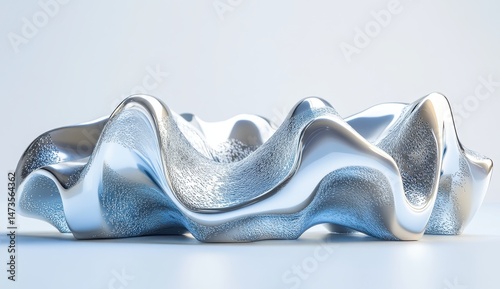 abstract, wavy, metallic, form, silver, smooth, reflective, modern, sculpture, design, three-dimensional, shape, texture, rippled, organic, flowing, contemporary, minimalist, geometric, fluid, art, structure, rendering, light, pale, blue, cool, surface, polished, metal, industrial, futuristic, sculptural, object, decorative, unique, avant-garde