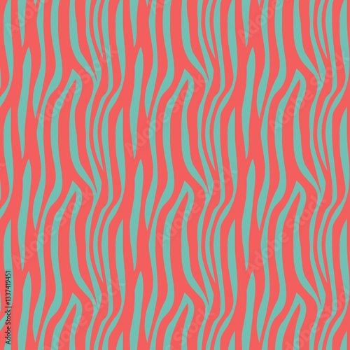 Abstract wavy pattern in coral and turquoise colors with a playful design
