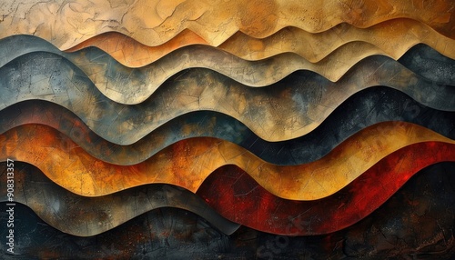 abstract, wavy, pattern, warm, colours, art, background, colourful, design, geometric, graphic, illustration, texture, wave, gold, orange, red, brown, black, grey, modern, contemporary, digital, painting, minimalist, simple, elegant, dynamic, vibrant, artistic, creative, visual, style, decorative, element, concept, graphic design, wallpaper, artwork, composition, shape, form, contrast, depth, dimension, line, curve, flow, movement