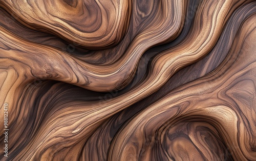 Abstract Wavy Wood Texture, Brown Wooden Background, Natural Wood Grain, 3D Rendered Wooden Surface.