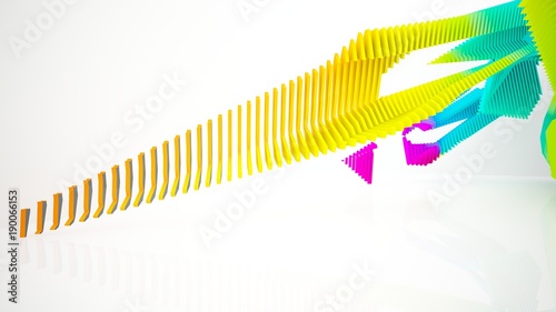 Abstract white and colored gradient parametric interior with window. 3D illustration and rendering.
