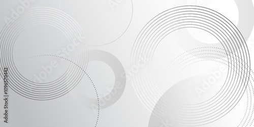 Abstract white background with black circle rings. Spiral sound wave rhythm line and dots dynamic abstract background, Vector illustration design for presentation, banner, cover, poster, texture Etc.
