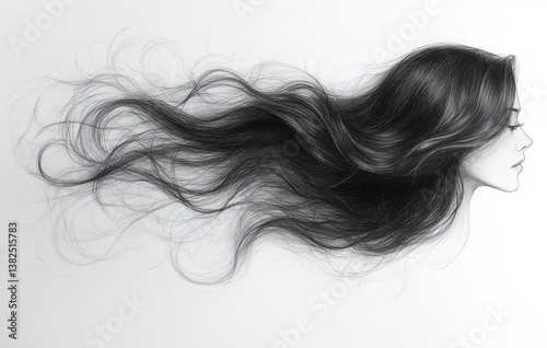 Abstract Woman Face Flowing Hair Fashion Illustration Pencil Sketch Watercolor Painting Minimalist Style