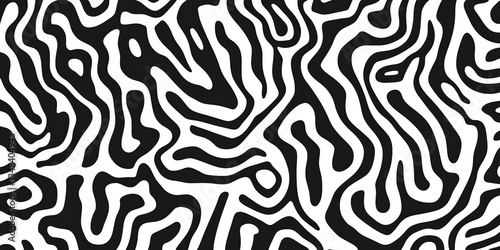 Abstract Zebra Pattern Vector Design with Black and White Wavy Stripes