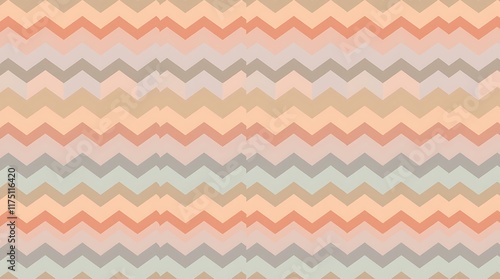 Abstract Zigzag Pattern: A seamless, digital illustration featuring a rhythmic, horizontal pattern of muted zigzags in soft peach, coral, grey, and green tones. Ideal for backgrounds, fabrics.