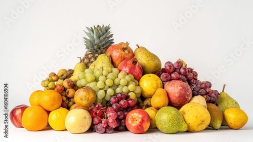 Abundance of Fresh Seasonal Fruits on a White Backdrop Showcasing Healthy Eating