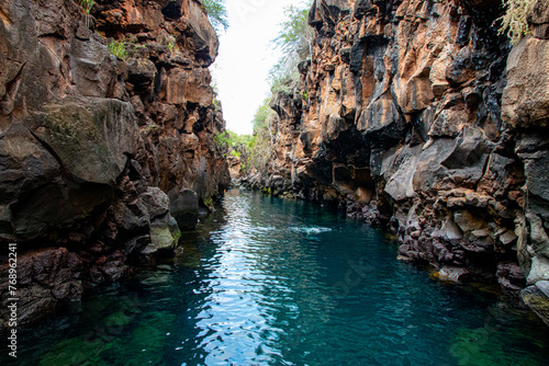 Acantilado de agua cristalina turquesa, Las grietas, galápagos, ecuador