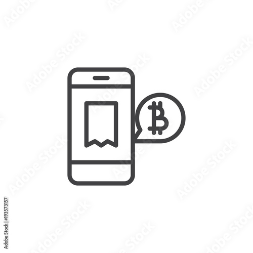 Accept bitcoin payment outline icon. linear style sign for mobile concept and web design. Bitcoin mobile payment simple line vector icon. Symbol, logo illustration. Pixel perfect vector graphics
