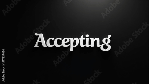 accepting, word, message, dark, black, letter, white, typography, contrast, acceptance, concept, surface, communication, idea, expression, allowance, agreements, graphic, display, signs, text, background, wall, studio, motivation