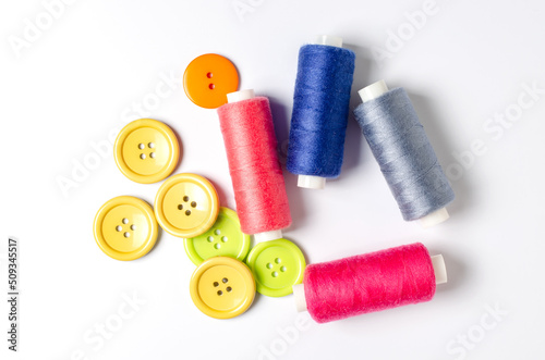 Accessories for sewing on a white background. Closeup.