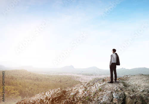 businesswoman, green, rock, top, achieve, look, view, nature, isolation, meditation, perspective, calm, calmness, inspiration, find, adult, business, woman, caucasian, female, formal, success, achievement, active, attractive, beautiful, boss, control, elegant, executive, relax, successful, young, alone, assessment, brave, challenge, champion, cliff, confident, corporate