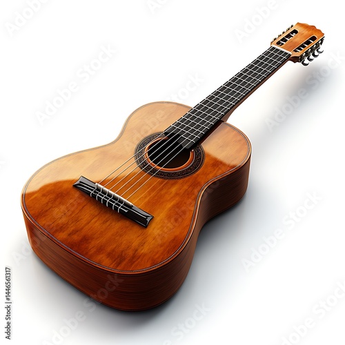 Acoustic Classical Guitar Close Up On White Background High Resolution Photo