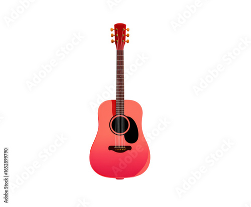 Acoustic guitar in vibrant pink for music lovers and artists on a transparent background, cut out