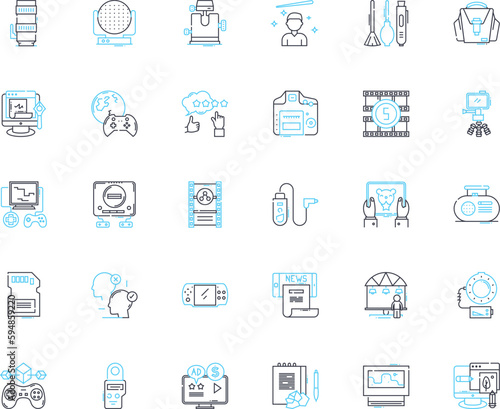 Action camera linear icons set. Adventure, Waterproof, Compact, Stabilization, Durability, HD, Outdoor line vector and concept signs. Shockproof,POV,Sports outline illustrations Generative AI