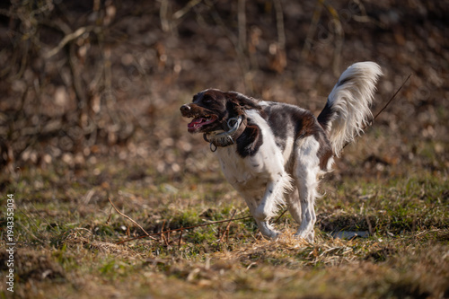 Active Munsterlander Dog Running and Playing Outdoors in Park