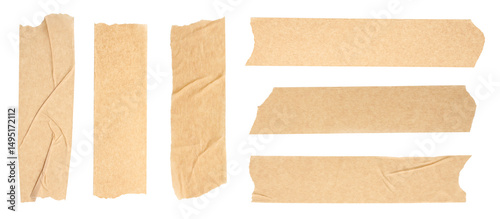 Adhesive tape pieces isolated on white, set
